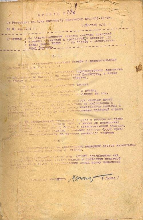 Знаковым стало одно из обращений студентов - участников Великой Отечественной войны, опубликованное в приказе по РИИЖТу 16 января 1943 года. В нем говорилось: