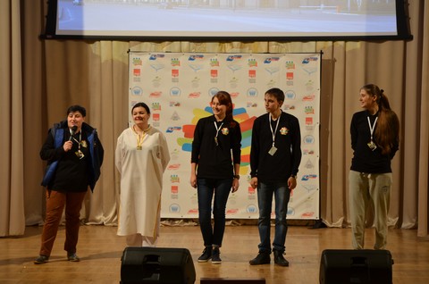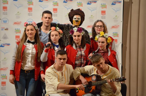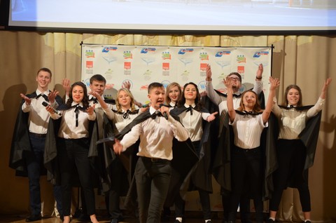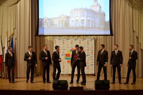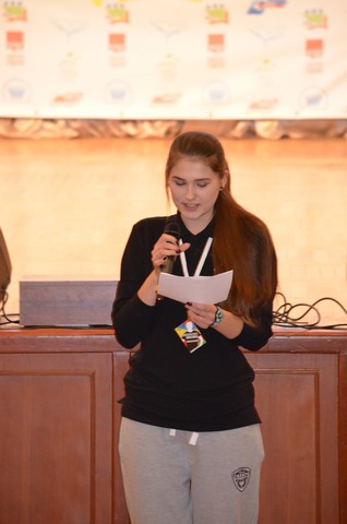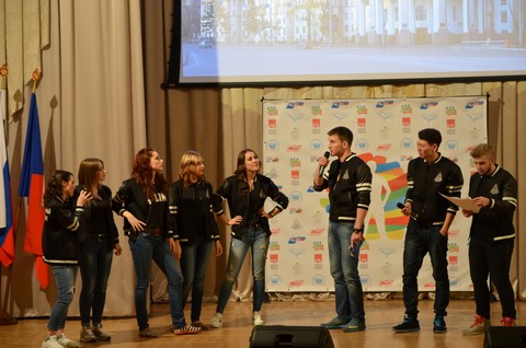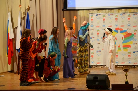 На сцене актового зала делегации участников представили свои визитные карточки.
