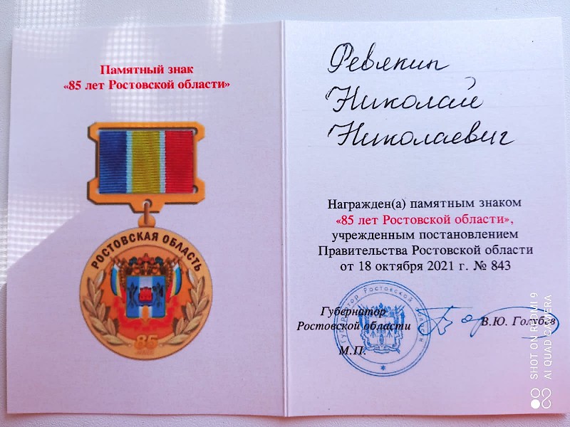 10 сентября на открытии Спартакиады Дона 2022г. старшему преподавателю кафедры «Физическое воспитание и спорт» Ревякину Н.Н. был вручен памятный знак «85 лет Ростовской области», учрежденный постановлением Правительством Ростовской области за вклад в развитие и спортивных достижений на Дону.