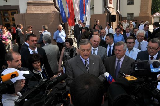 Участники «Школы добровольчества» встретились с председателем конкурсной комиссии вице-президентом ЦНС и ФАП, председателем попечительского совета Всероссийской программы «Святость материнства» Н.В. Якуниной, председателем Синодального отдела религиозного образования и катехизации РПЦ, митрополитом Ростовским и Новочеркасским Меркурием, ректором РГУПС, академиком РАН В.И. Колесниковым, председателем Попечительского совета Благотворительного фонда Святителя Василия Великого К.В. Малофеевым, директором института демографии Игорем Белобородовым, директором школы-интерната г. Цхинвал Р.Х. Тедеевым, актером Егором Пазенко, координатором добровольческих проектов Центра лечебной педагогики Екатериной Лебедевой и другими гостями.