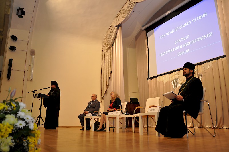 Епископ Шахтинский и Миллеровский Симон огласил текст Итогового документа XXI Димитриевских образовательных чтений «1917-2017: уроки истории Донского края, который был принят единогласно.