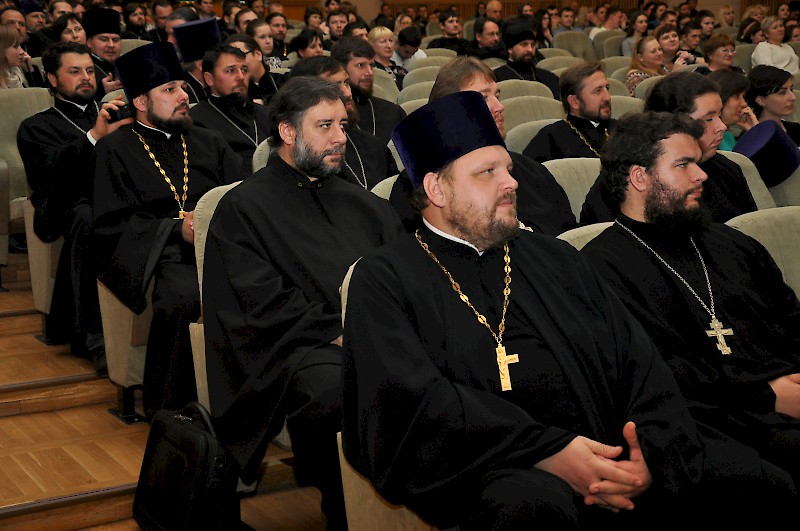 В церемонии приняли участие епископ Шахтинский и Миллеровский Симон, руководитель отдела религиозного образования и катехизации Ростовской епархии протоиерей Андрей Мекушкин, первый проректор РГУПС Александр Челохьян, клирики трех епархий, входящих в состав Донской митрополии, воспитанники Донской духовной семинарии, руководство и студенты ведущих высших и средних учебных заведений Дона, представители учреждений культуры и искусства.