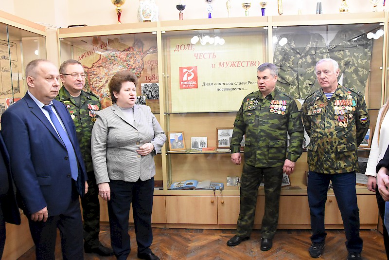 Встреча началась с открытия выставки «Долг, честь и мужество», посвященной Дням воинской славы России и 75-летию Победы в Великой Отечественной войне 1941-1945 г.г.