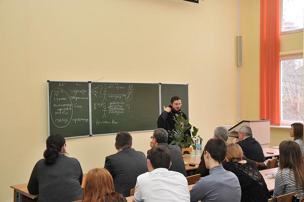 Студенты нашего университета прослушали лекцию «Человек: пространство смыслов» эксперта Синодального отдела по делам молодежи Московского патриархата, старшего преподавателя кафедры биомедицинской этики Российского медицинского университета им. Н.И. Пирогова, члена экспертного совета комитета по вопросам семьи, женщин и детей Госдумы РФ, Иеромонаха Дмитрия Першина.