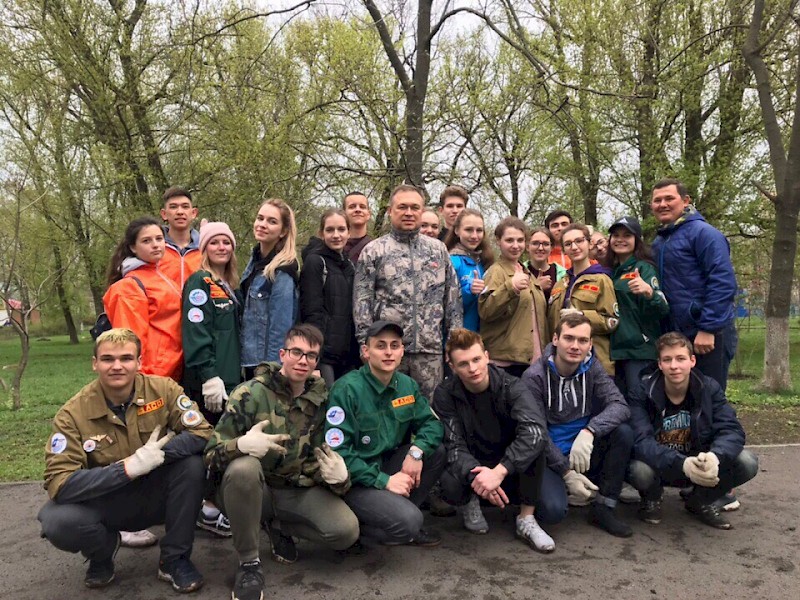 Бойцы СО очистили территорию парка имени Октябрьской Революции от мусора. Студенты вместе с заместителем Губернатора Ростовской области Гончаровым Виктором Георгиевичем посадили сосны, березы, орехи и другие деревья на территории парка.