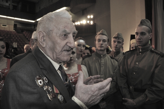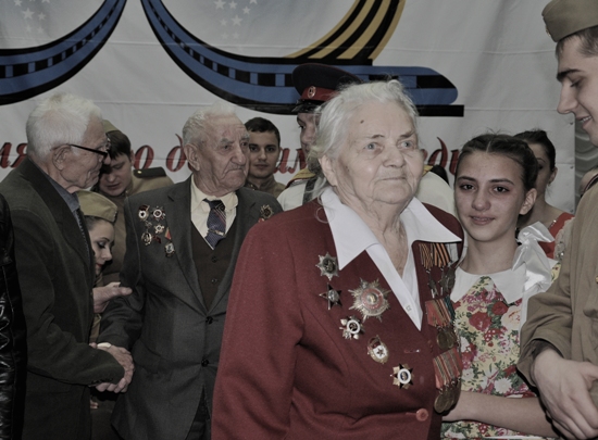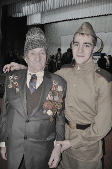 По окончании концерта к студентам подошли ветераны, свидетели и непосредственные участники войны, со словами благодарности. Их мгновенно окружили наши ребята, завязался разговор … и никто не мог сдержать слез, слушая воспоминания солдат, сумевших отстоять нашу Родину и сохранить мир на нашей Земле.