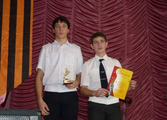 07 февраля студенты филиала РГУПС в г. Кропоткине Пронин Денис и Дьяков Вячеслав заняли 1 место в муниципальном этапе краевого фестиваля военно-патриотической песни «Пою мое Отечество», организованном отделом молодежной политики администрации МО Кавказский район.