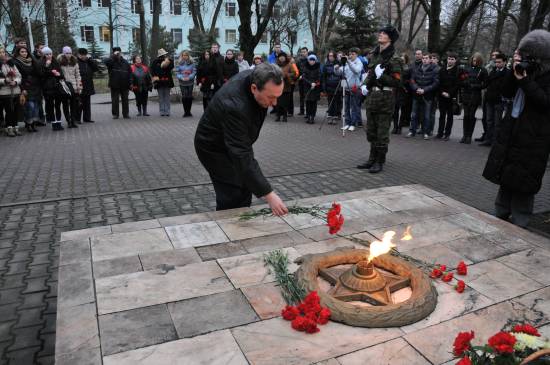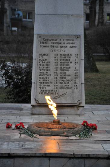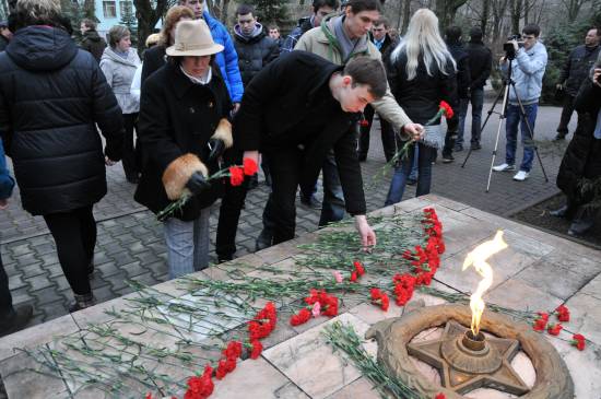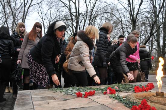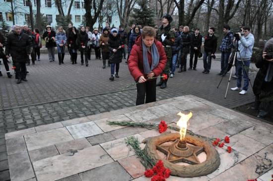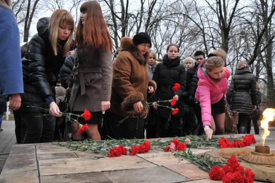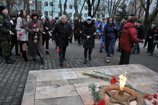 Сегодня 14 февраля  в день 70-летия освобождения г. Ростова-на-Дону от немецко-фашистских захватчиков студенты Ростовского государственного университета почтили память погибших в страшной войне возложением цветов и венков к памятному обелиску  погибших сотрудников и студентов РИИПС-РИИЖТ и  «Звездочке» - памятному  знаку, посвященному героям -  Ростовского народного ополчения.