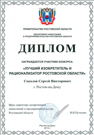 В рамках реализации Областной долгосрочной целевой программы инновационного развития Ростовской области на 2012-2014 годы департаментом инвестиций и предпринимательства Ростовской области был объявлен конкурс в номинациях «Лучшие инновации Дона» и «Лучший изобретатель и рационализатор Ростовской области».