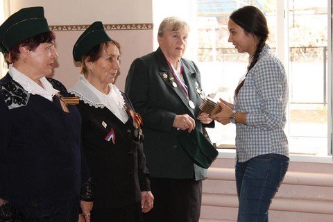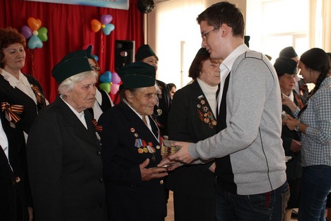 В заключении концерта председатель студенческого совета Денисова Тамара и представитель старостата Фалалеев Клим отблагодарили хор ветеранов «Фронтовые друзья» небольшими сладкими презентами!