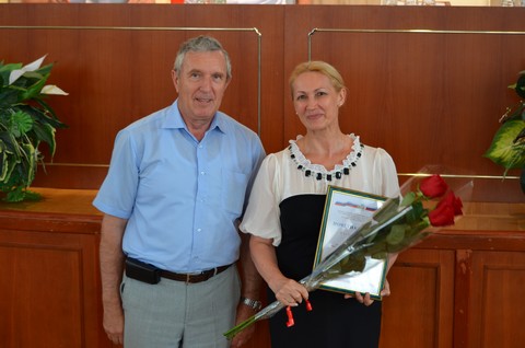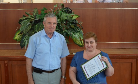 Алфёров Г.В торжественно вручил почетные грамоты за многолетний добросовестный труд по подготовке и воспитанию квалифицированных специалистов для железнодорожного транспорта, активную работу в первичной профсоюзной организации в решении социально-экономических задач и в связи со 110-летием РОСПРОФЖЕЛ и 95-летием Дорпрофжел на СКЖД следующим членам профсоюзной организации работников РГУПС: Акоповой И.С., Бех Т.Д., Будановой И.Ю., Калининой Г.Г., Щербаковой Н.Ю.