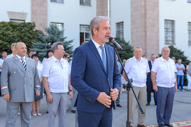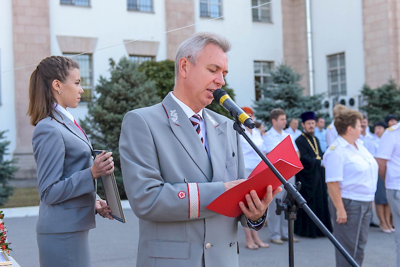 Прозвучали приветствия: ректора РГУПС, д.т.н., профессора Верескуна В.Д., заместителя Генерального директора ОАО «РЖД» Макарова А.С., депутат Государственной Думы VII созыва, заместитель председателя Комитета Государственной Думы по образованию и науке, Тутова Л.Н., министра транспорта Ростовской области Иванова А.Н., президента РГУПС, академика РАН Колесников В.И., начальника СКЖД-филиала ОАО «РЖД» Пястолова В.Г., Председателя ДОРПРОФЖЕЛ СКЖД Пружины М.В., заместителя руководителя Южного территориального управления Росжелдор Харченко Н.А., настоятеля храма Святого Праведного Иоанна Кронштадтского Владислав Паланчева.