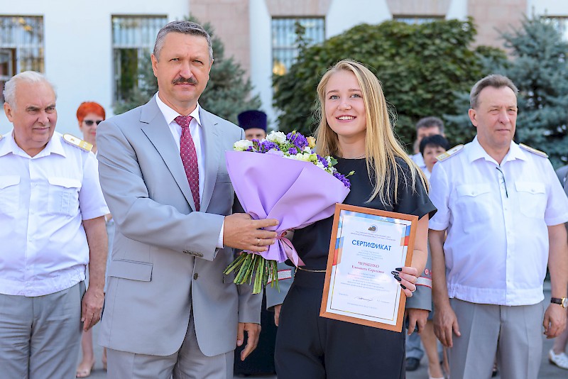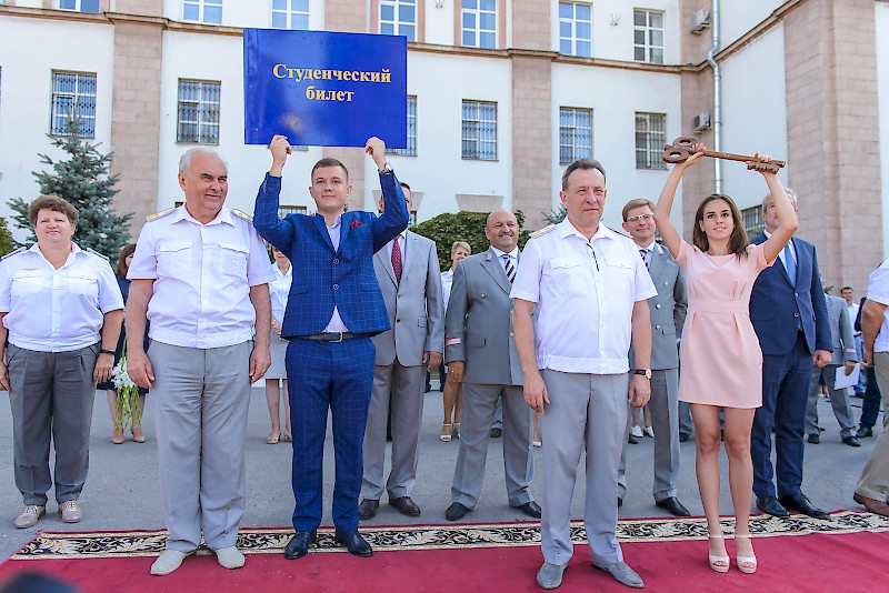 По традиции ректор Верескун В.Д. и первый проректор Челохьян А.В. вручили первокурсникам символические атрибуты студенчества: «Студенческий билет» и «Ключ знаний».