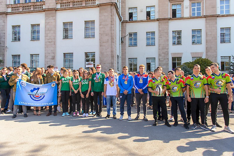 Первокурсников приветствовали бойцы студенческих отрядов, спортсмены университета и участники художественной самодеятельности.