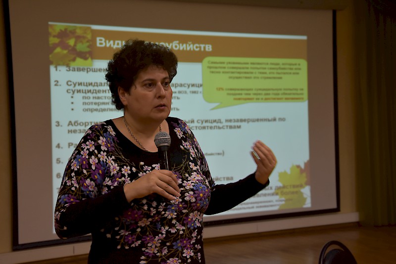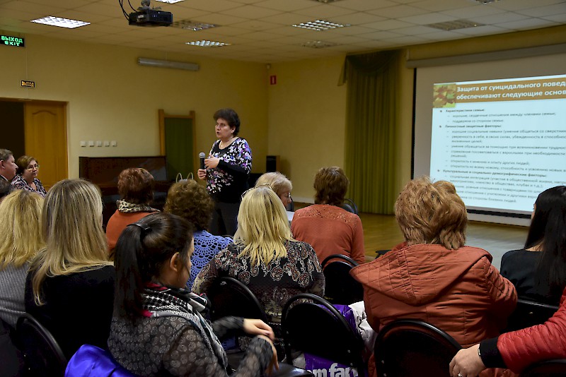 Тема встречи: «Предупреждение суицидального поведения, наркотической и алкогольной зависимостей молодёжи». Как отметила в начале мероприятия Ольга Александровна, в последнее время наблюдается значительный рост психического неблагополучия молодёжи и, как следствие, широкое распространение в молодёжной среде наркотической и алкогольной зависимостей, увеличение числа суицидов. Основные понятия, причины, мотивы, функции и формы асоциального поведения молодых людей, факторы суицидального риска, динамика развития и возможное предупреждение суицидального поведения – вот некоторые из проблем, которые обсуждались на встрече. Сопровождалось содержательное выступление О.А. Бухановской яркими примерами из большой врачебной практики и личного опыта. В завершении беседы прозвучало много вопросов, на которые врачом-специалистом были даны подробные ответы и рекомендации.