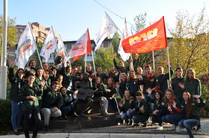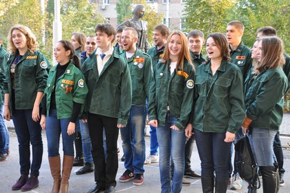 Бойцы сводного студенческого отряда РГУПС совместно с представителями Ростовского регионального отделения Молодёжной общероссийской общественной организации «Российские студенческие отряды» организовали проведение флешмоба, посвящённого 85- летию университета и 55-летию студенческих отрядов у памятника студенческим строительным отрядам РГУПС у главного корпуса университета.
