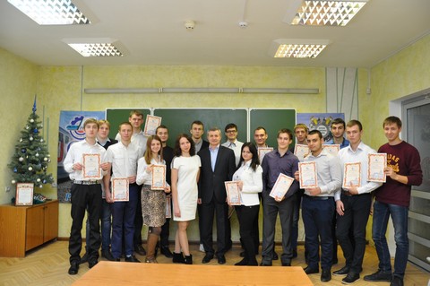 Декан факультета вручил благодарственные письма за высокие показатели успеваемости и активное участие в общественной работе факультета, ответил на вопросы и поздравил своих студентов с наступающим Новым годом.