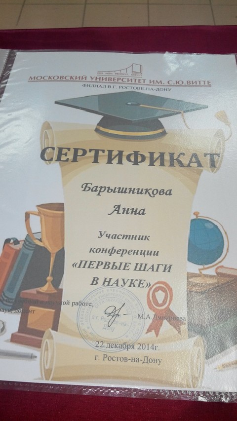 22.12. 14 г. Студент кафедры "Государственное и муниципальное управление" Болтунов Александр занял первое место среди участников Первой межрегиональной научно-практической конференции "Первые шаги в науке" был награждён дипломом I степени.