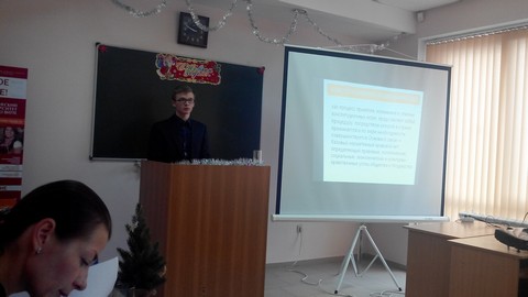 22.12.14г. Студент кафедры "Государственное и муниципальное управление" Болтунов Александр занял первое место в Первой межрегиональной научно-практической конференции "Первые шаги в науке".