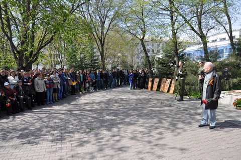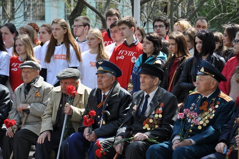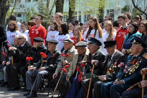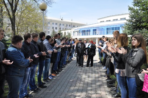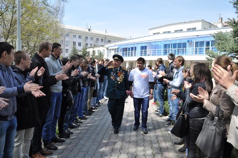 Флагами, цветами и аплодисментами дорогих гостей встречали студенты РГУПС. 16 автомобилей с фронтовиками, сопровождаемых мотоциклистами из клуба «Фаер Моторс» прибыли в парк университета. Студенты-волонтеры бережно провожали ветеранов к памятной стеле «Студентам и сотрудникам РИИЖТа, погибшим во время Великой Отечественной войны». На торжественном митинге ветеранов приветствовали: проректор по воспитательной работе и социальному развитию Елена Шепилова, председатель Совета ветеранов г. Ростова-на-Дону Борис Старосельский, который передал наказ будущим поколениям россиян - достойным наследникам Победы и начальник отдела по делам молодежи администрации г. Ростова-на-Дону Андрей Косенко. Минута молчания! Дорогим ветеранам студенты бытсоветов студенческого городка посвятили литературно- музыкальную композицию с музейной композицией «У нас на всех одна Победа!». Ветераны вместе с молодежью прошли по весеннему цветущему парку университета и написали слова напутствия молодому поколению у «Сердца памяти». Памятная фотография. И конечно остановка на привал в кафе «Молодежное» - попить чаю, вспомнить своих боевых друзей. Доброго Вам, здоровья родные, дорогие наши ветераны! Мы помним и гордимся Вами!