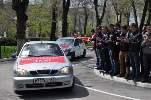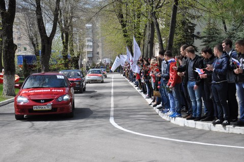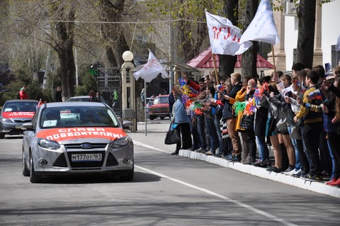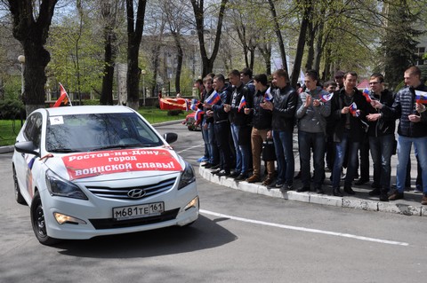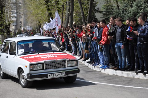 Студенты РГУПС встречали традиционный автопробег «Вместе с дедом празднуем Победу».
