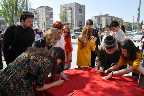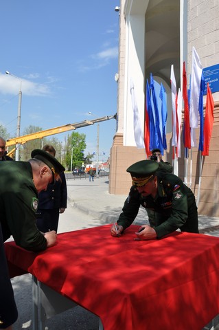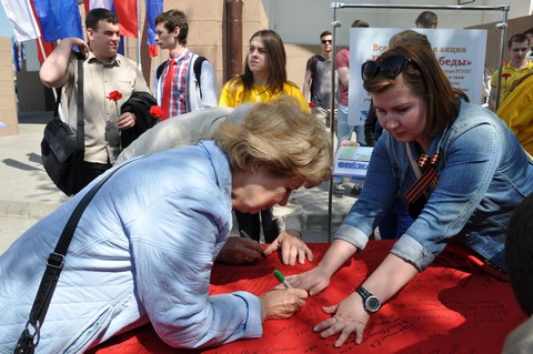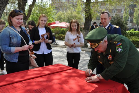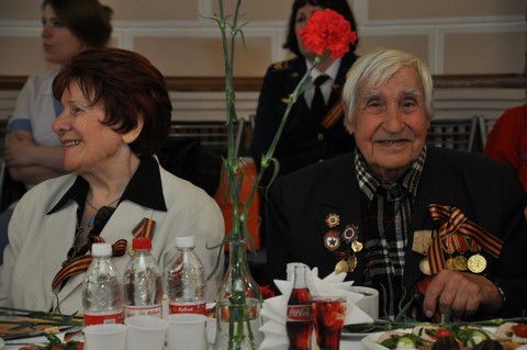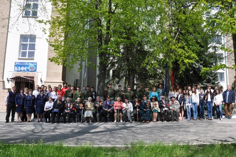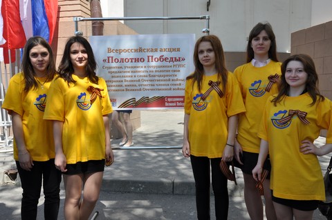 С утра перед главным корпусом университета было торжественно и шумно. Студенты развернули Полотно Победы, где сотрудники и студенты оставляли записи о своих родных и близких участниках далеких событий Великой Отечественной войны. Георгиевская ленточка засияла на груди всех участников мероприятия. Ребята бережно и с глубоким уважением встречали ветеранов, их в университете осталось всего 21 человек, на встречу смогли прийти только 14 человек.