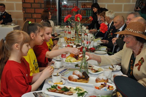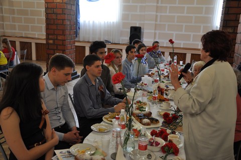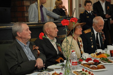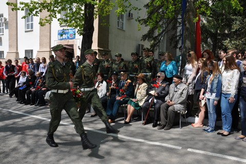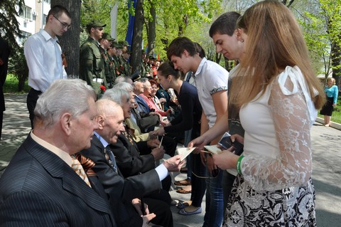 Для них, самых дорогих и уважаемых гостей, было подготовлена целая программа. Мимо них, чеканя шаг с флагом Победы прошли, отдавая военные почести, студенты военной кафедры. От имени ветеранов и от себя лично студенты возложили цветы к Стеле «Сотрудникам и студентам РИИЖТа, погибшим на фронтах Великой Отечественной войны 1941-1945г.г.» Лицеисты РГУПС подарили ветеранам свои письма. Фотография на память студентов с ветеранами. В теплой проникновенной обстановке ветераны на чаепитии общались со студентами. Они убеленные сединой, рассказывали молодежи памятные истории из своей боевой юности. Со словами благодарности к великому подвигу фронтовиков и тружеников тыла выступил ректор РГУПС В.Д. Верескун. Приветствовали героев: начальник Главного управления железнодорожных войск Российской Федерации генерал-лейтенант О.И. Косенков, проректор по воспитательной работе и социальному развитию Е.Г. Шепилова, председатель профсоюзного комитета сотрудников В.А. Финоченко, председатель профсоюзной организации студентов Д.А. Киселев, председатель совета ветеранов Великой Отечественной войны и труда В.Ф. Криворудченко. И , конечно, звучали дорогие каждому сердцу военные песни, такие родные в исполнении творческих коллективов студентов «Любава» и «Жемчужина Дона». С зажигательным танцем перед ветеранами выступил совсем юный коллектив участниц танцевального ансамбля «Ажиотаж».
