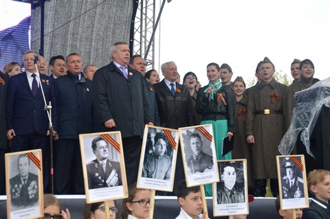Знаменитое произведение Давида Тухманова и Владимира Харитонова исполнили Губернатор Ростовской области Василий Голубев, председатель Законодательного собрания Ростовской области Виктор Дерябкин, глава Администрации города Ростова-на- Дону Сергей Горбань, главы муниципальных образований города и региона, представители учащейся и студенческой молодёжи, неравнодушные жители города и области.