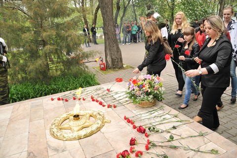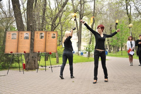Минутой молчания и возложением цветов к памятнику ветераны Великой Отечественной войны и студенты почтили память героев Великой Отечественной войны. Ребята показали театрализованное представление «Я помню, я горжусь!». Звучали проникновенные стихи и песни о войне, огненное файер шоу олицетворяло огонь, как символ справедливости и продолжения жизни, со стендов смотрели лица их сверстников, которые отдали жизнь за мир на нашей земле.