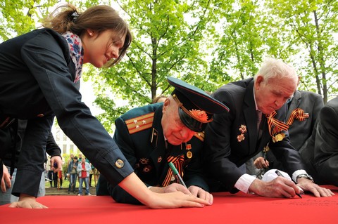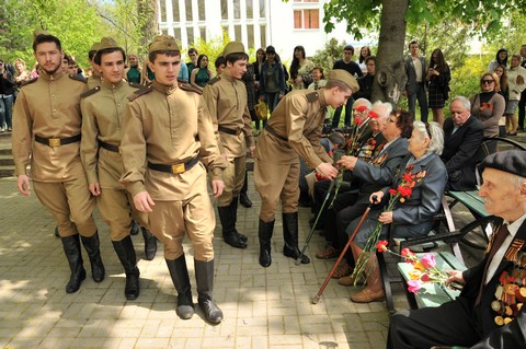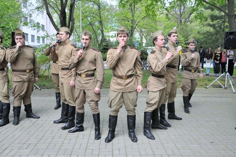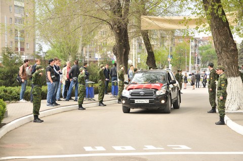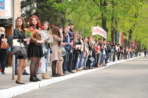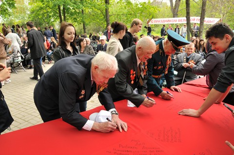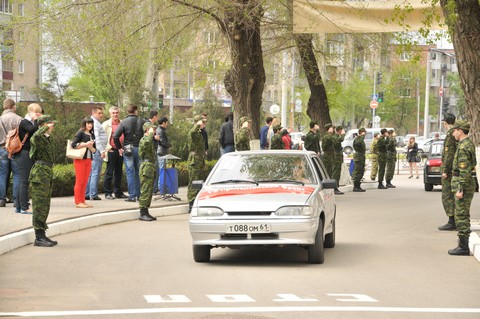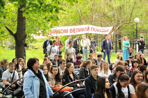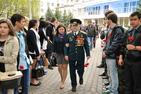 24 апреля Студенты РГУПС горячо приветствовали ветеранов Великой Отечественной войны - участников автопробега, посвященного 69-ой годовщине Великой Победы.