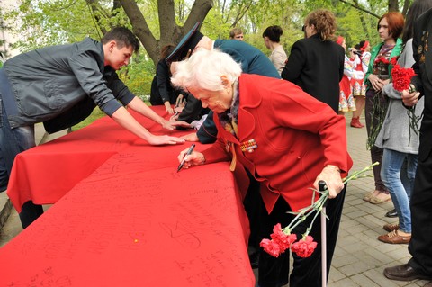 Лучшие творческие коллективы университета подарили ветеранам праздничный концерт. Дорогие гости, и студенты написали свои пожелания на Полотне Победы, которое традиционно разворачивается каждую Победную Весну в Ростовском государственном университет путей сообщения.