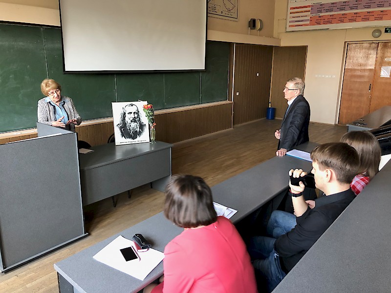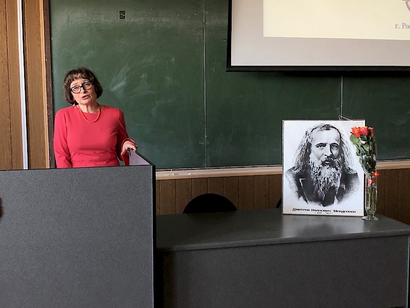 Расширенное заседание секции было посвящено 150-летнему юбилею важнейшего события в области естествознания – открытию Д.И. Менделеевым Периодического закона. Личности, широте научных интересов и вкладе в мировую науку этого великого русского ученого был посвящен доклад заведующей кафедрой «Химия» Воляник С.А.