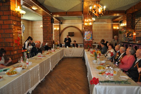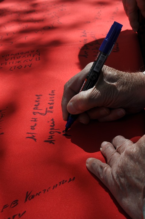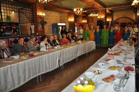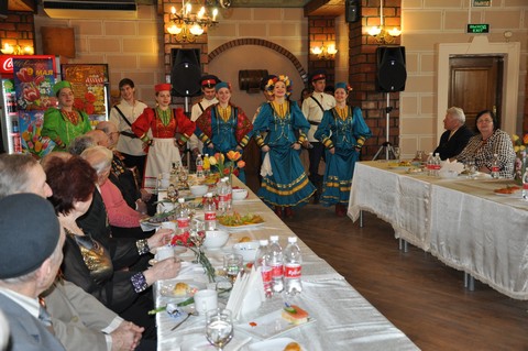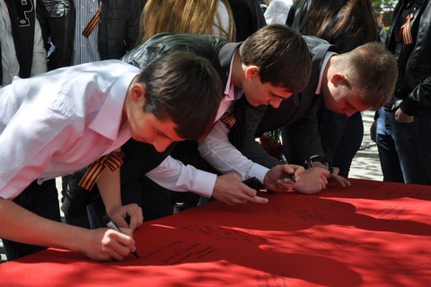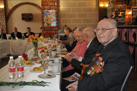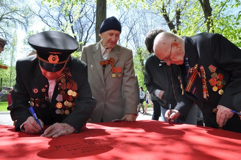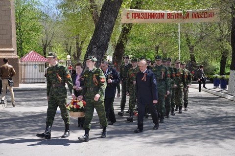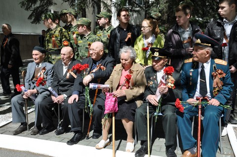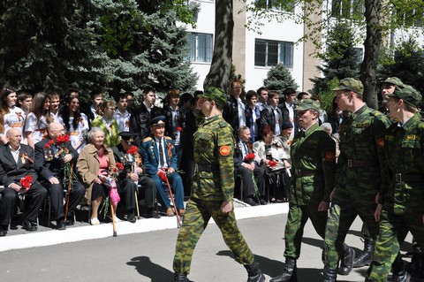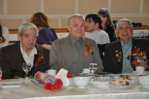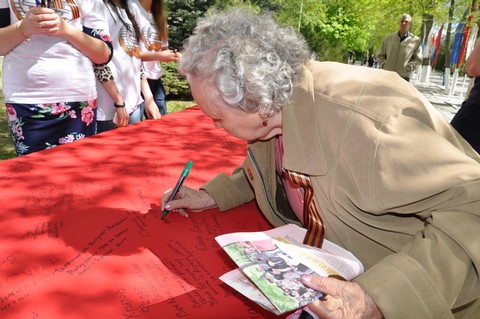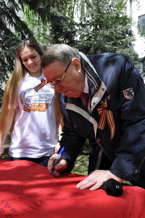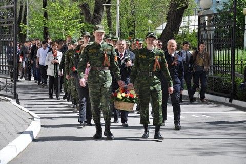 В студенческом парке шумно и празднично. Студенты встречали ветеранов Великой Отечественной войны благодаря их за ратный подвиг, повязывая георгиевские ленточки. На Полотне Победы традиционно, многие годы ветераны, студенты и преподаватели делают записи о своих дедах и прадедах, боевых товарищах - участниках, тех страшных событий Великой Отечественной. Со строевой песней и равнением на ветеранов маршировал взвод студентов факультета военного обучения. В солнечном весеннем парке традиционная фотография ветеранов со студентами и лицеистами. Торжественная делегация участников мероприятия возлагает цветы к Памятному Знаку героям народного ополчения, который риижтовцы ласково называют «Звездочкой». И, конечно, душевная встреча ветеранов за чайным столом. В атмосфере дружеской беседы, не скрывая слез нахлынувших воспоминаний, ветераны рассказывали о днях своей юности – тяжелой работе в тылу, сражениях на фронтах Великой Отечественной войны; о первой любви, становлении семейной жизни, рождении детей в те тяжелые для страны и каждого человека времена... Со словами искренней благодарности, преклонением к подвигу, совершенному старшим поколением риижтовцев в военные годы выступили: ректор РГУПС В.Д. Верескун, президент РГУПС В.И. Колесников, проректор по науке А.Н. Гуда, проректор по воспитательной работе и социальному развитию Е.Г. Шепилова. Народный ансамбль «Любава» подарил ветеранам концерт военных песен, которые не оставили равнодушными сердца и души наших дорогих ветеранов.