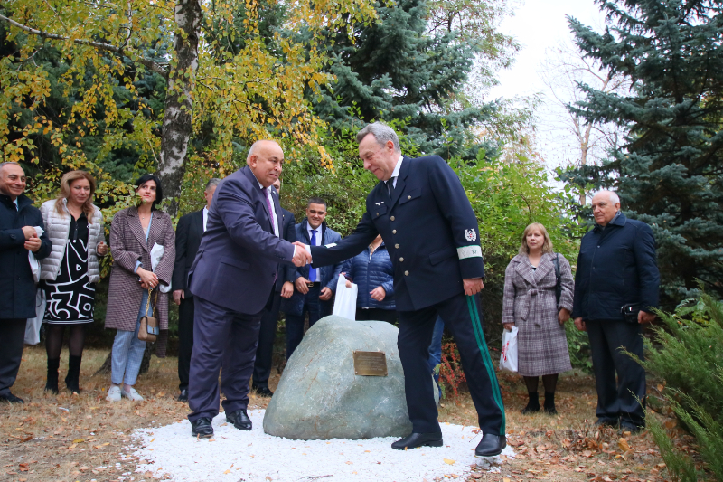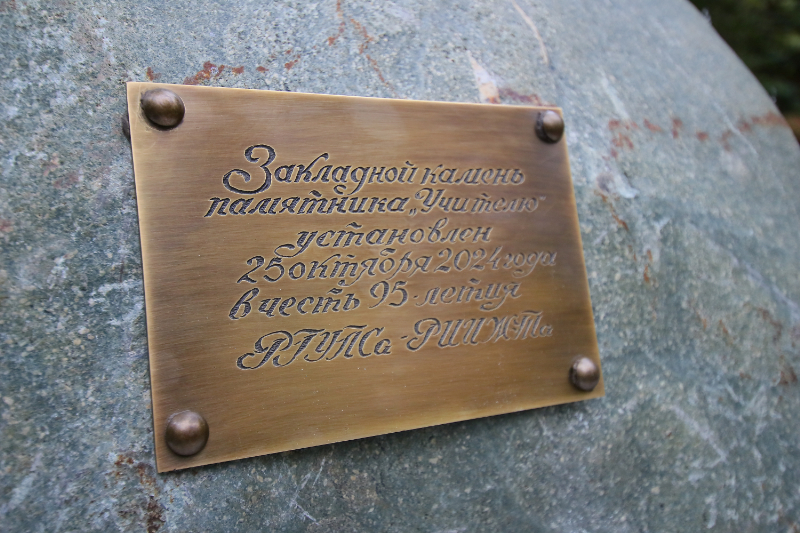 Далее на территории университетского парка состоялось открытие закладного камня памятника «Учителю» – подарок выпускника университета А.М. Узденова.