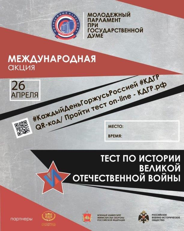 26 апреля 2019 года РГУПС примет участие в международной акции «Тест по истории Великой Отечественной войны».