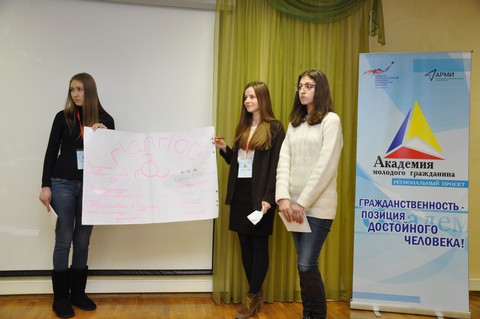 26 ноября студенты университета, техникума и учащиеся лицея ФГБОУ ВПО РГУПС приняли участие в региональном проекте «Академия молодого гражданина», реализуемом Комитетом по молодежной политике Ростовской области и Государственным автономным учреждением Ростовской области «Агентство развития молодежных инициатив». Ребята встретились с экспертами и тренерами проекта Микаеляном А.– экспертом Совета по межнациональным вопросам при Президенте РФ, председателем региональной общественной организации «Молодёжная Ассамблея Единый Кавказ»; Кайгермазовым А.– федеральным тренером/экспертом Всероссийской общественной организации «Молодая гвардия Единой России», председателем общественной волонтёрской организации «Перспектива»; Залепиловой М. - тренером-психологом общественной организаций «Здоровая планета» и другими.