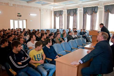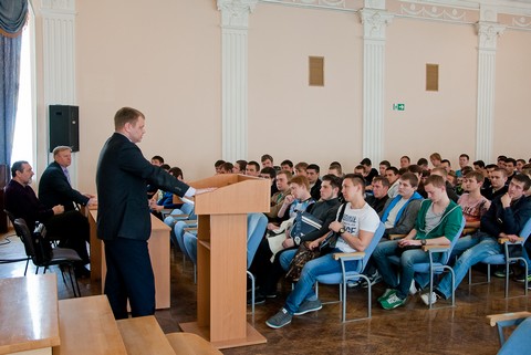 26.03.2015 состоялась встреча студентов техникума РГУПС с зам. начальника Северо-Кавказской Дирекции моторвагонного подвижного состава по кадрам и социальным вопросам Поляевым А. Г.