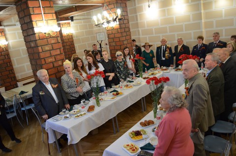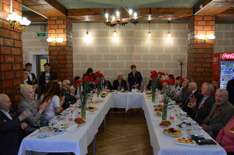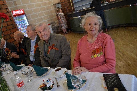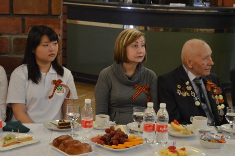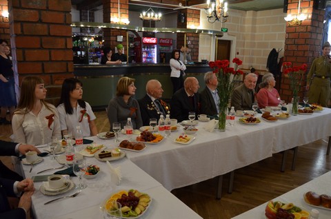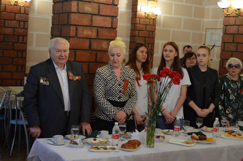с ветеранами. В теплой проникновенной обстановке ветераны на чаепитии общались со студентами.