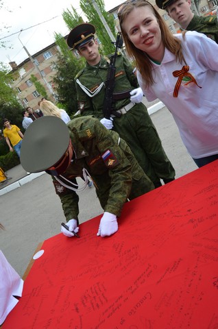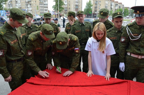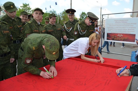 Студенты развернули Полотно Победы, где сотрудники и студенты оставляли записи о своих родных и