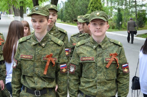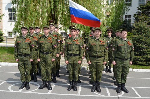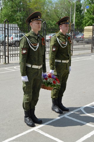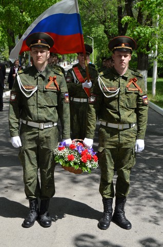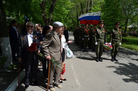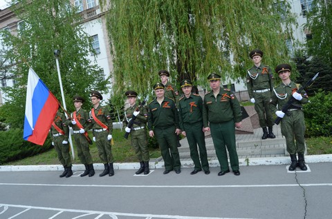 флагом Победы прошли, отдавая военные почести, студенты военной кафедры. От имени ветеранов и
