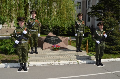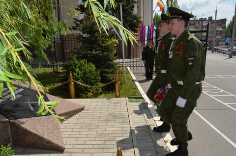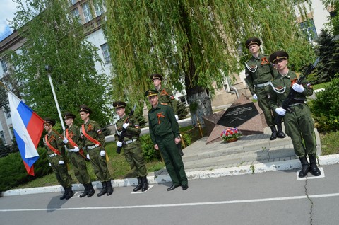себя лично студенты возложили цветы к Памятному знаку воинам Ростовского Стрелкового Полка