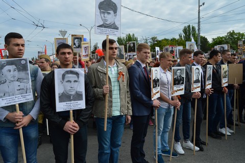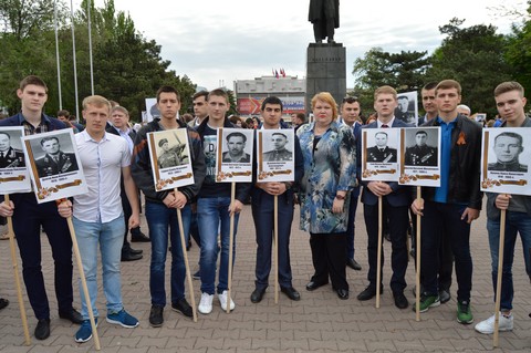 9 мая студенты учебного военного центра РГУПС приняли участие в шествии Бессмертного полка, пронеся по главным улицам нашего города фотографии Героев Советского Союза и полных кавалеров Ордена Славы, чьи имена связаны с донской столицей.