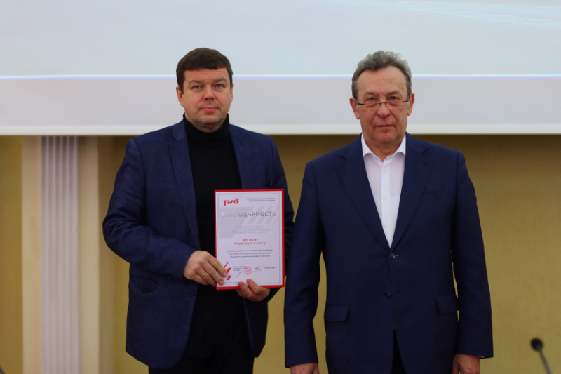 За высокие результаты в деле подготовки высококвалифицированных специалистов для организаций железнодорожного транспорта и в связи с 95-летием со дня образования Ростовского государственного университета путей сообщения поощрить Благодарственным письмом руководителя Росжелдора: