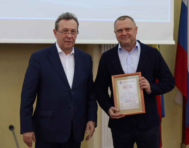 За значительный вклад в формирование и реализацию социально-экономической политики, активное участие в общественно-политическом развитии РО и в связи с 95-летием со дня образования университета поощрить Благодарственном письмом Законодательного собрания РО: