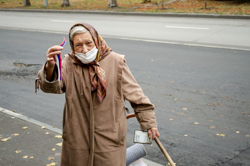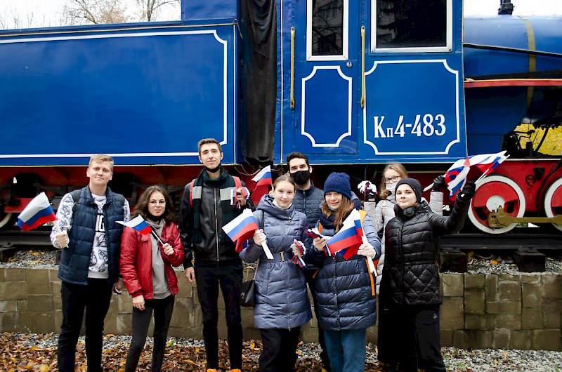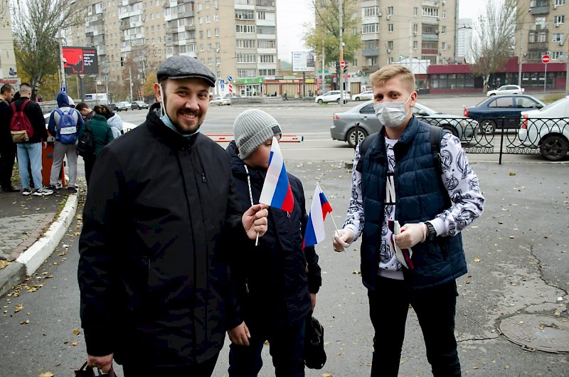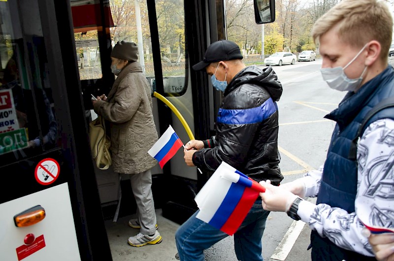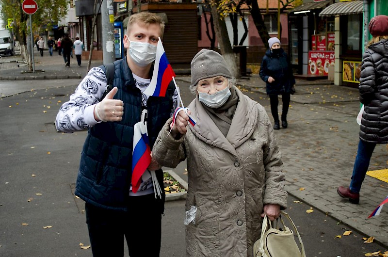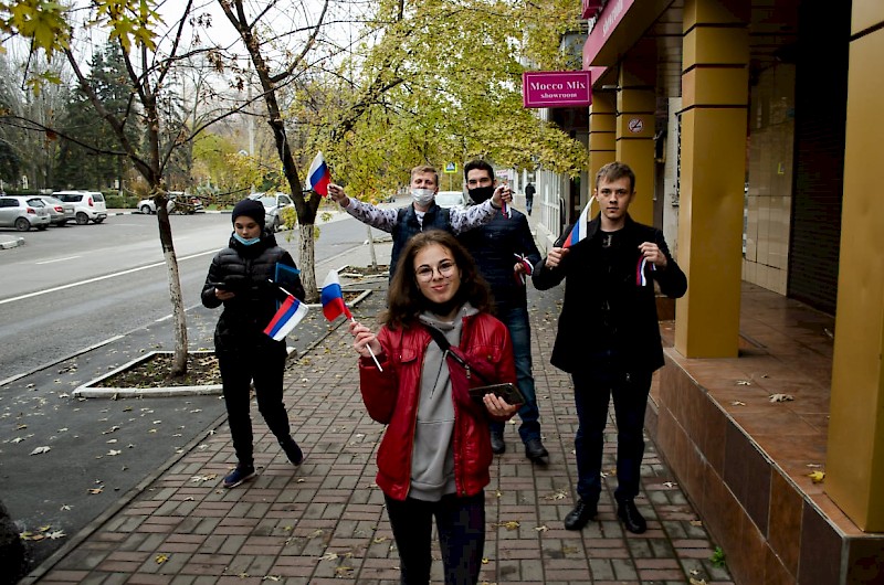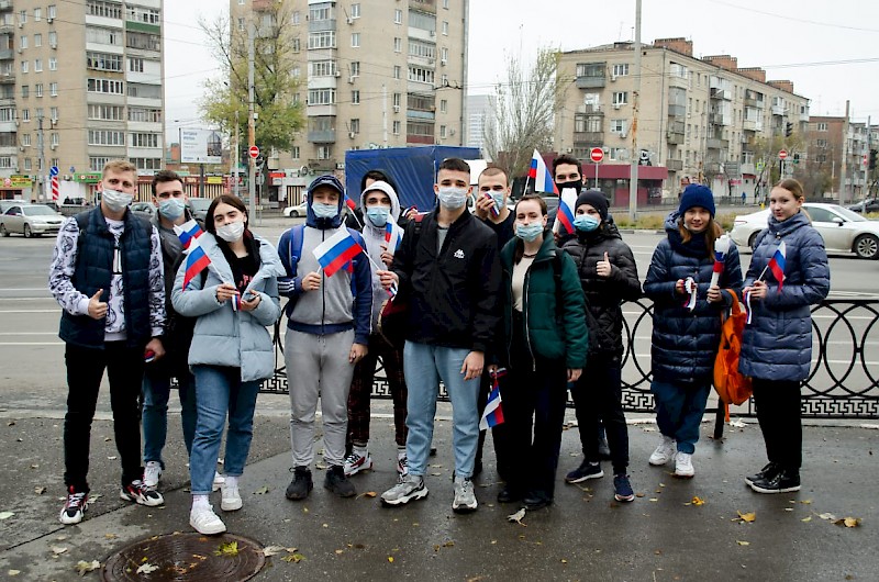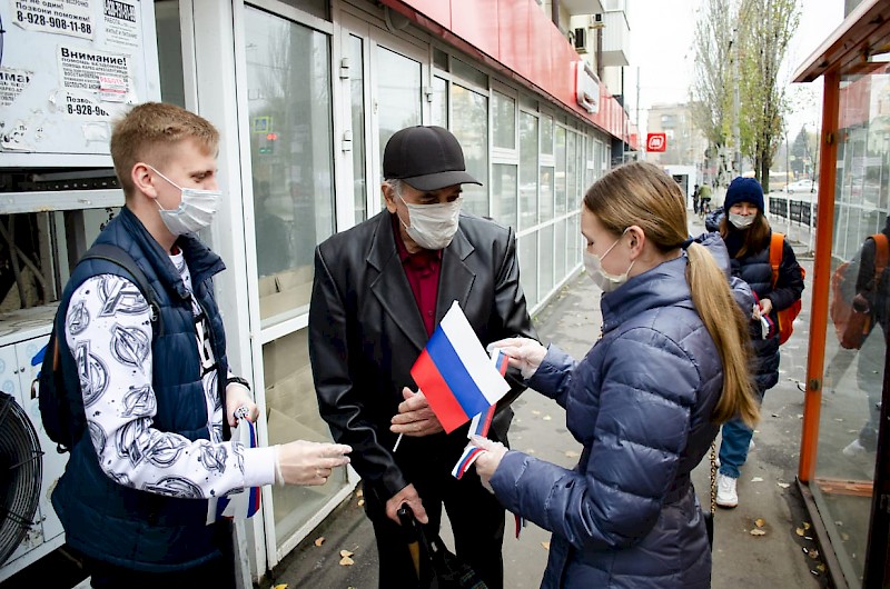 Ребята поздравили жителей города Ростова-на-Дону с праздником и вручили им флажки и ленточки с символикой Российского государства.