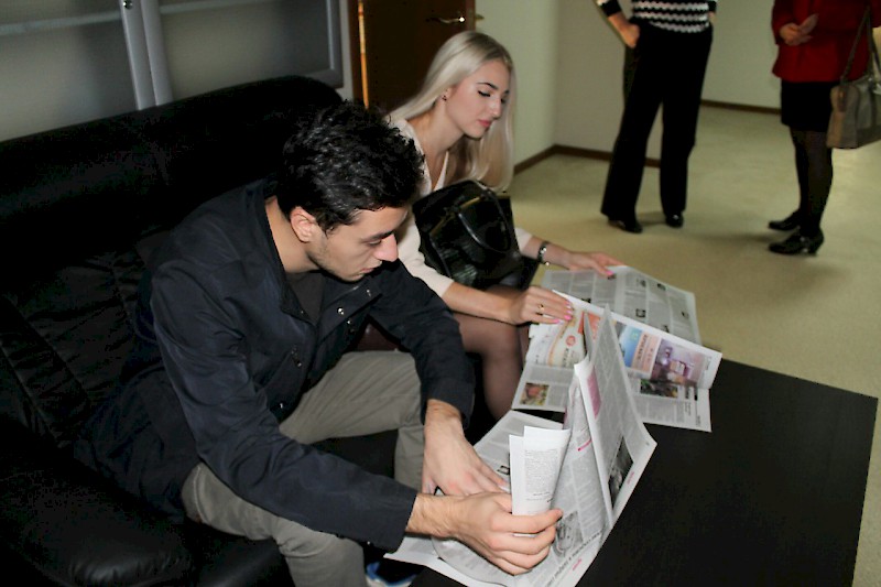Главный редактор газеты, Виктория Никитченко, рассказала ребятам о продуктах издательства, особенностях и сложностях выпуска независимой газеты, посвященной сельской жизни. Прокомментировала Виктория Валентиновна и наболевшую тему о непопулярности прессы по сравнению с Интернетом: «Особой беды для газеты нет, ведь бумага всего лишь носитель. Профессия журналиста останется и в Интернете». Главный редактор также рассказала ребятам о специфике журналистского расследования в газете и том, как «Крестьянин» взаимодействует с властями. Студентов-рекламистов заинтересовала деятельность рекламного отдела издательского дома. В этом вопросе главный редактор обещала посодействовать и пригласила ребят на практику.