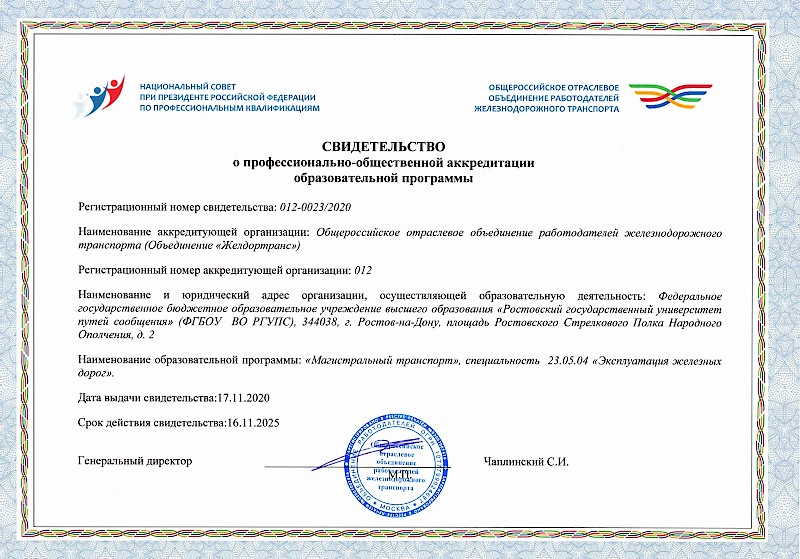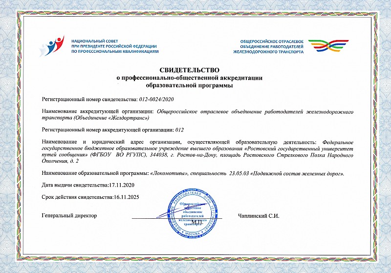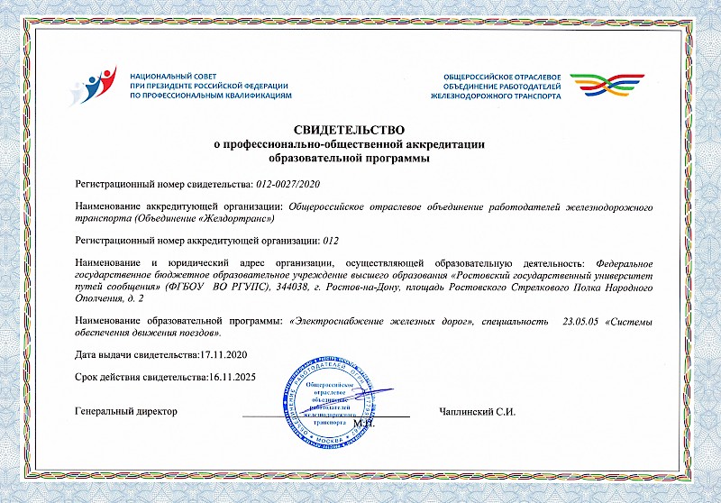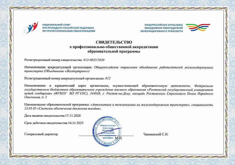Теперь качество образовательных программ и высокий уровень развития лабораторной и учебно-тренажерной базы РГУПС подтверждены не только свидетельством о государственной аккредитации, но и свидетельствами о профессионально-общественной аккредитации: