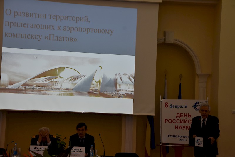 Как отметил профессор РГУПС Э.А. Мамаев, «симбиоз практики и теории является движением вперед». Поэтому от лица практиков открывал пленарное заседание руководитель комитета по развитию транспортно-логистического комплекса Торгово-промышленной палаты Ростовской области А.В. Потеряхин, который представил содержательный доклад на тему «Аэропорт Платов – «движение вверх»: алгоритм успеха». Выступление докладчика о проблемах и перспективах развития одного из крупнейших аэропортов страны вызвало оживленный интерес и массу вопросов ученных, экономистов и общественных деятелей.