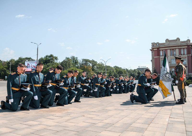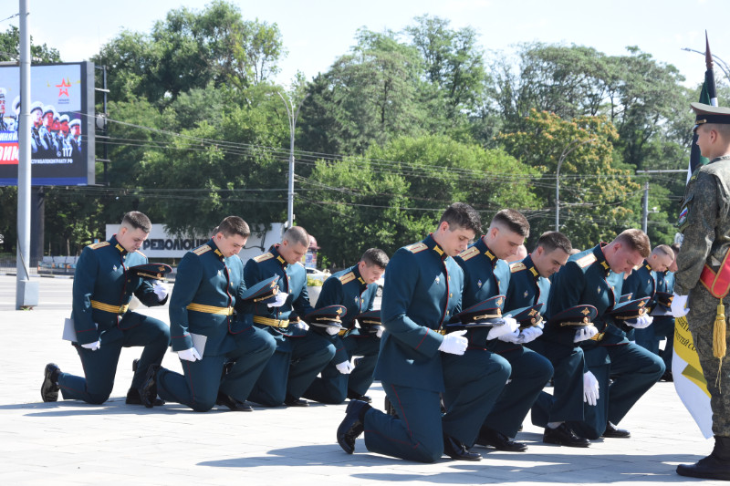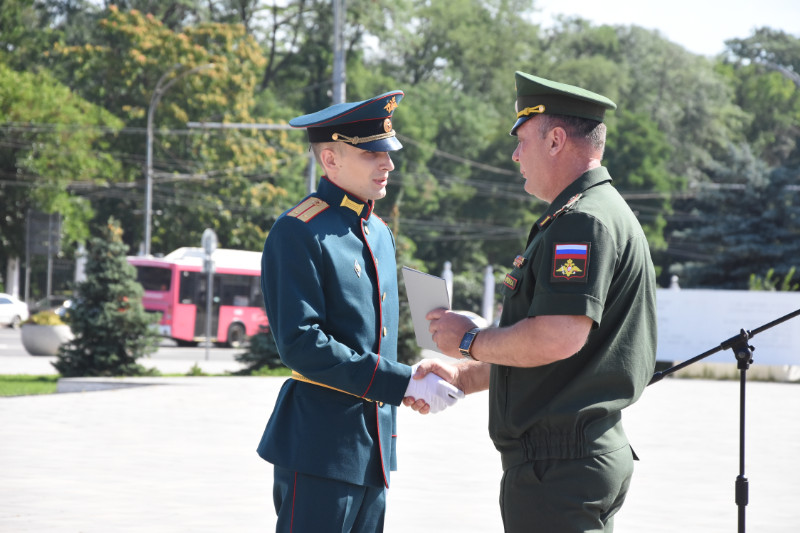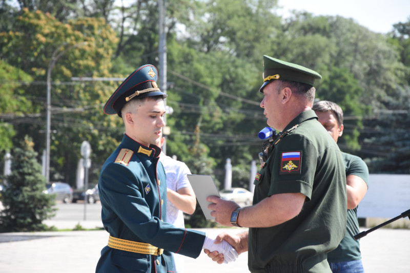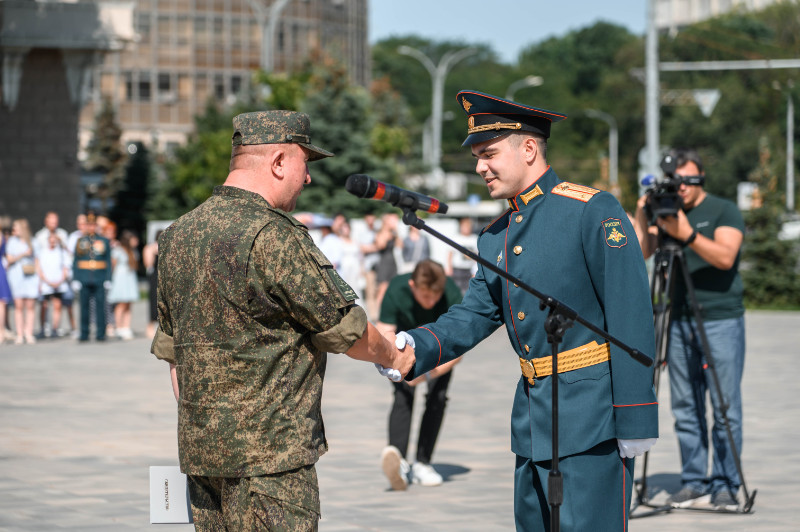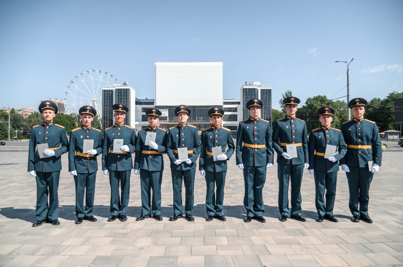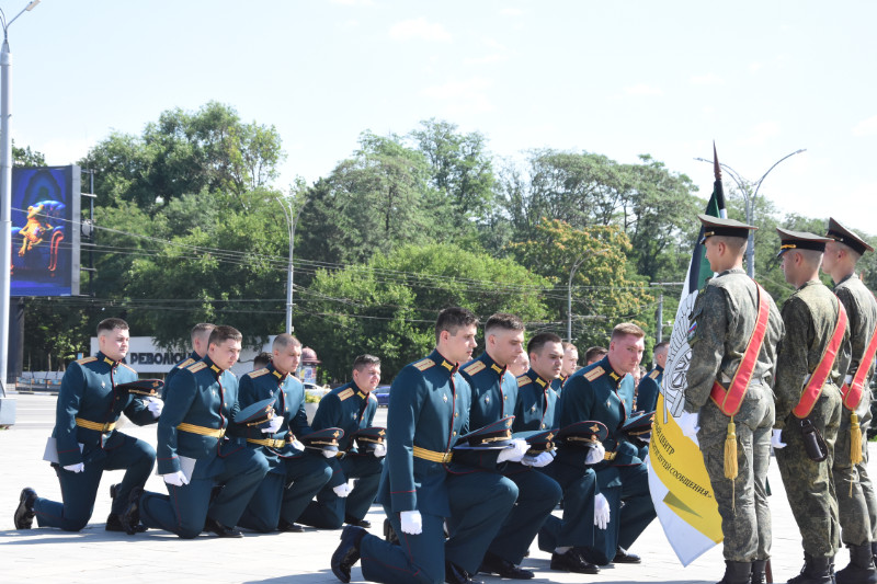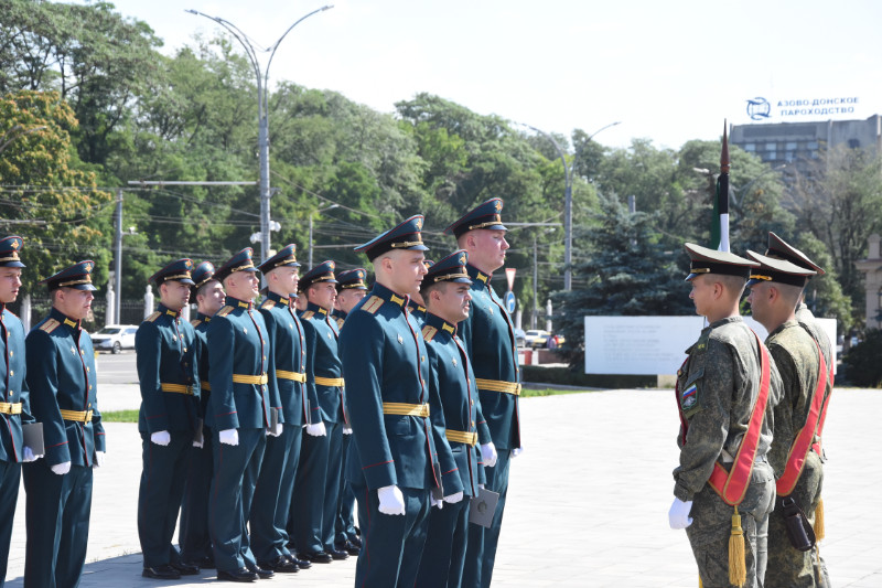 На Театральной площади г. Ростова-на-Дону поздравить молодых лейтенантов РГУПС собрались: командование Южного военного округа, ветераны, преподаватели, родные и близкие выпускников.