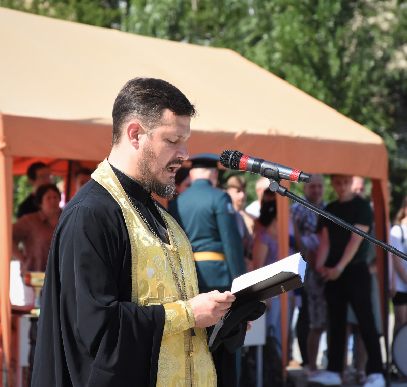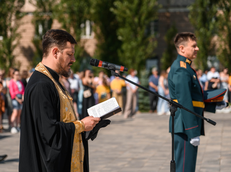 По традиции состоялось благословение воинов на служение Отечеству, Чин благословения совершил настоятель храма Святого Иоанна Кронштадтского иерей Владислав Паланчев.